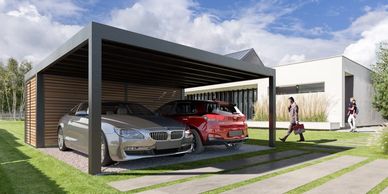 Our carport designs provide practical, stylish shelter for your vehicles. With modern aesthetics and durable materials, these carports integrate seamlessly with most of our stock plans for your home, offering a functional and space-saving solution for vehicle protection.